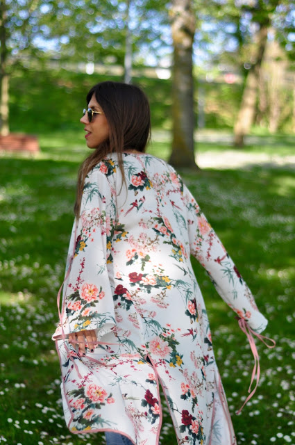 Si seguís el blog desde el inicio de los tiempos sabréis que el kimono es una de las prendas recurrentes en mis looks cuando llega el buen tiempo. Lo bueno de esta temporada es que llegan en formato maxi largos, por lo tanto me flipan más. Este es de Stradivarius de la nueva temporada. Lo que me ha enamorado es los tonos y las mangas acampanadas y con unos detalles de lacitos. Una monez, vamos.