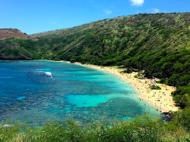 Hanauma Bay es sin duda uno de los sitios más impresionantes que he visto. Es una reserva natural, hay que pagar para entrar, creo recordar que eran unos 7 dólares por persona. Es una playa que se formó en un cráter de un volcán extinto. La playa es espectacular, con muchísima vegetación y arrecifes de coral, con miles de peces. Aprovechamos para hacer snorkel, y yo me quedé alucinada de todos los peces que vimos, aunque no os voy a mentir, como nos dijeron que había morenas estaba acojonada que me persiguiera una cual la Sirenita. Pasamos el día allí, disfrutando de la naturaleza, de pasear, de nadar en esas aguas cristalinas. Merece mucho la pena visitarlo, de verdad.
