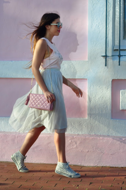 Desde siempre me llamó mucho la atención esta casa que hay en Mera, un pueblo cerca de A Coruña. Ya de decía al maridi que tenía que hacerme unas fotos allí sí o sí. Justamente el domingo fuimos a pasear por la playa, y la casa era el fondo perfecto para el look. Lo vuelvo a decir, de mayor quiero una casa rosa :)